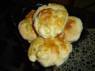 - Formar bolas e pincelar os scones com gema de ovo já misturada com uma gota de leite.